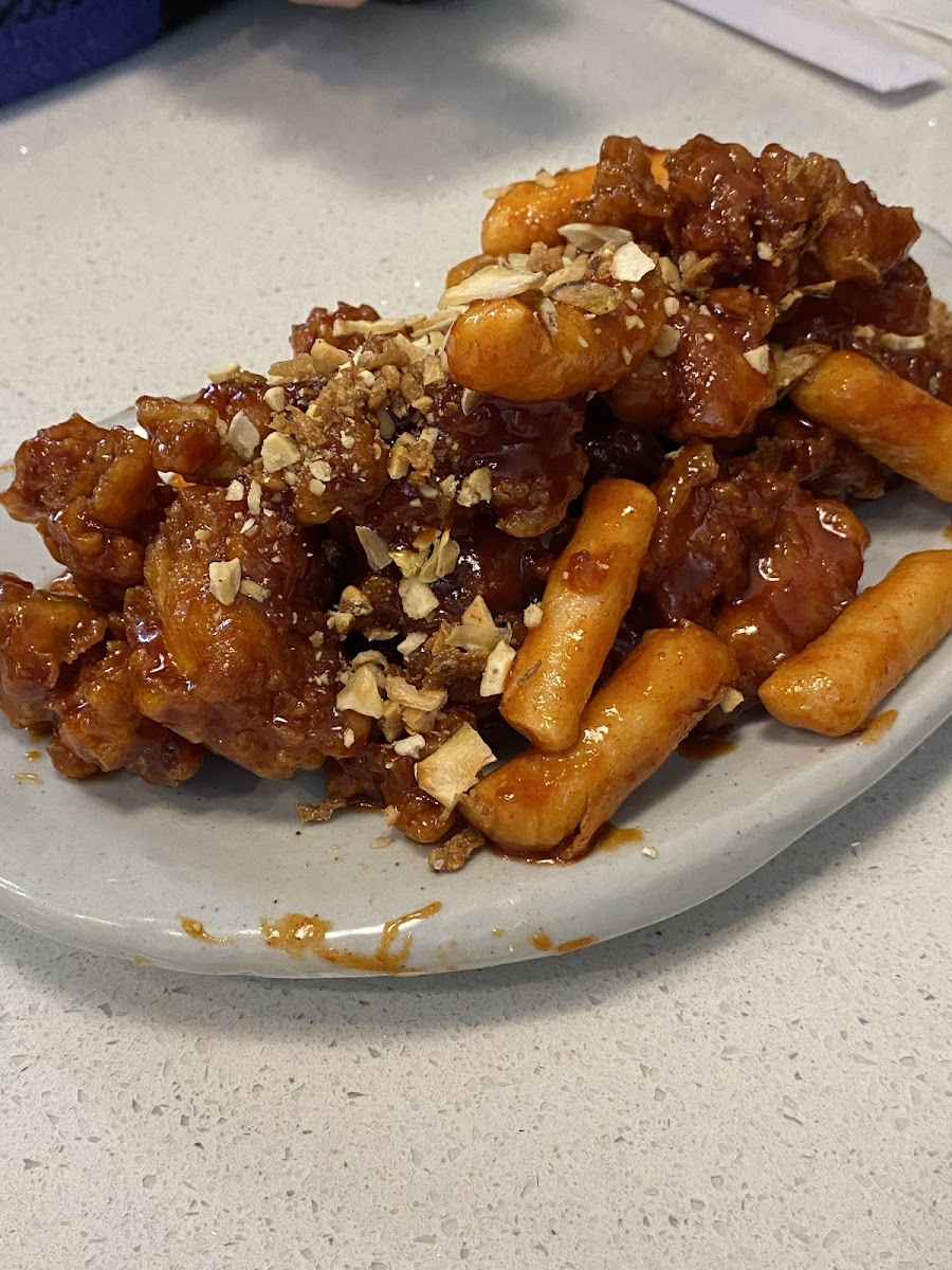 One standout dish you won’t want to miss is the Deep Fried Chicken with Sweet Chili Sauce (닭강정). Crispy, tender chicken is coated in a glossy, sweet and spicy sauce that perfectly balances the flavors. If you’re a fan of comfort food with a twist, their Pork Katsu Bibimbap (양념돈까스 비빔밥) is another crowd-pleaser. This dish combines a crispy, breaded pork cutlet with the vibrant, mixed rice and vegetables of a classic bibimbap, all drizzled with a savory sauce.