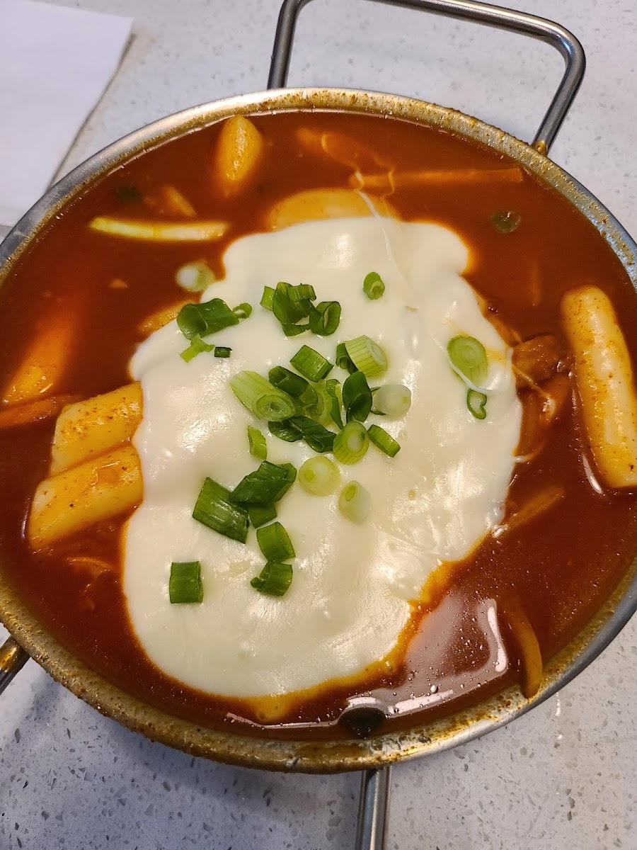 For seafood lovers, the Crispy Seafood Pancake (바삭해물파전) offers a crunchy texture paired with a mix of fresh seafood and vegetables, making it a delightful snack or appetizer to share with friends. If you have a thing for cheese, the Cheese Tteokbokki (치즈떡볶이) will satisfy your cravings. The chewy rice cakes are smothered in a sweet, spicy sauce, with the added indulgence of melted cheese on top.